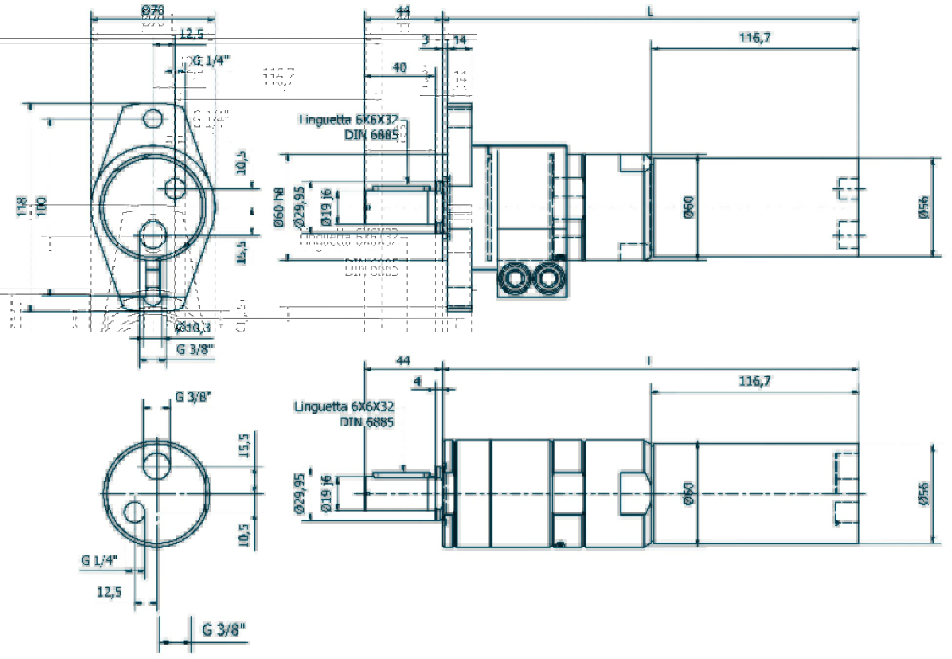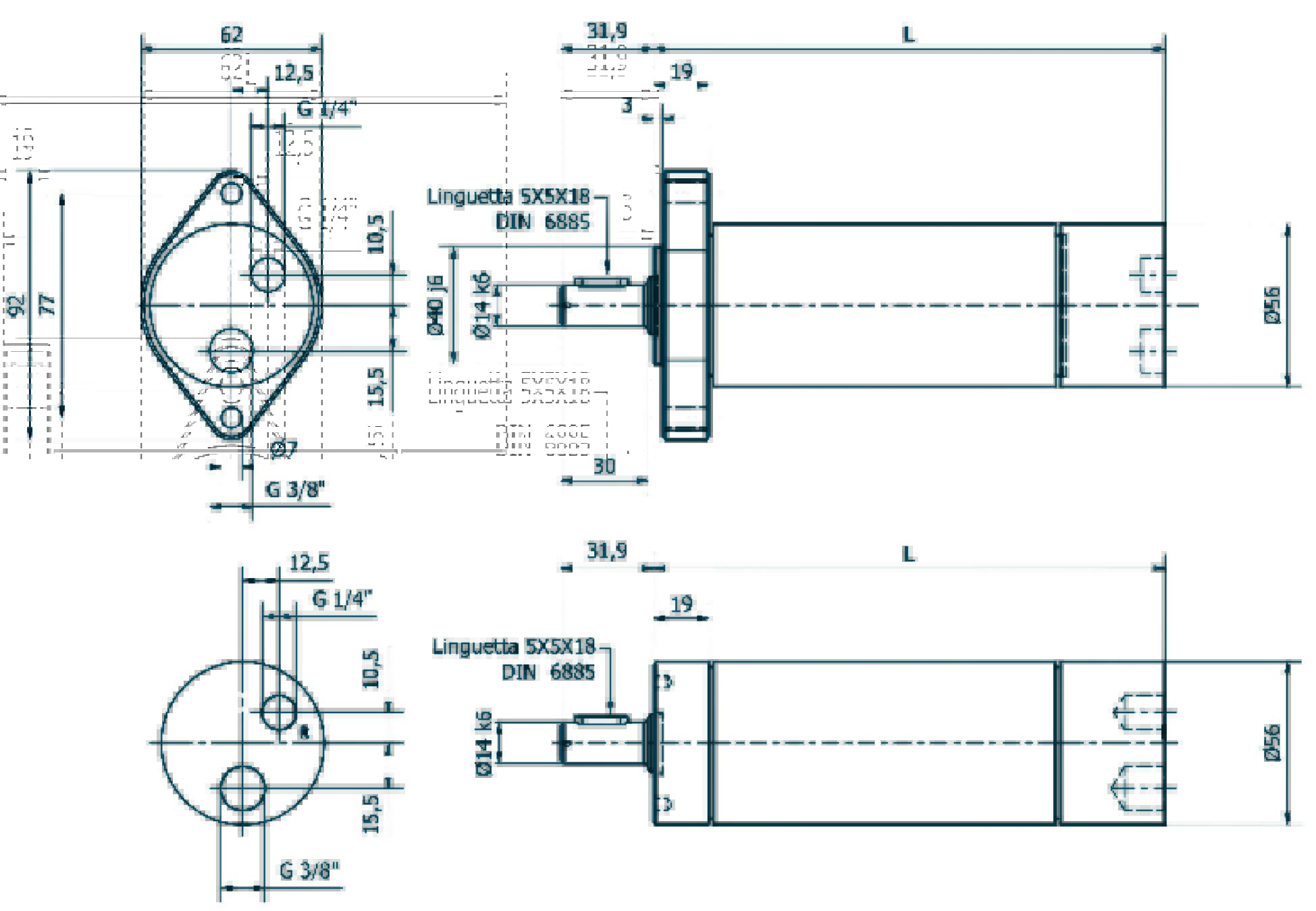Чертеж пневмодвигателей M55N3B-M55N3C TSA: