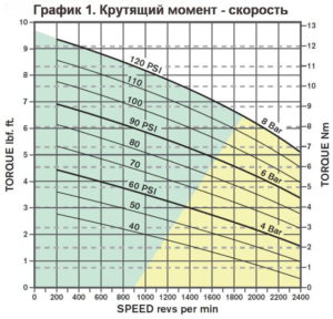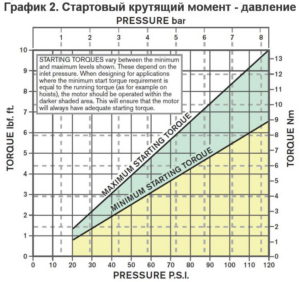 Если двигатели не должны запускаться под нагрузкой, например приводы вентиляторов, выбор может быть сделан с помощью графика 1 или графика 3, используя только требуемый крутящий момент или мощность. Для приложений, в которых двигатель запускается под нагрузкой, таких как подъемники, лебедки или гусеничные приводы, также необходимо учитывать пусковой (стартовый) крутящий момент в Графике 2. Пусковой крутящий момент варьируется между указанными максимальными и минимальными значениями в зависимости от углового положения выходного вала.